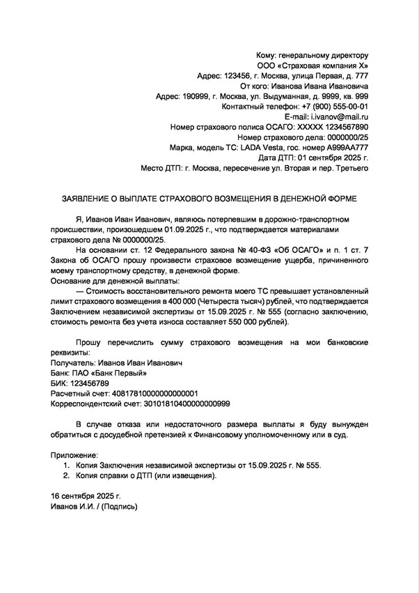 При назначении денежной выплаты вы имеете полное право проверить, насколько корректно страховщик рассчитал сумму ущерба. Для этого необходимо запросить копию расчета ущерба страховой компании. Отправьте в страховую письменный запрос любым способом. Предоставить вам копию должны в течение трех рабочих дней.