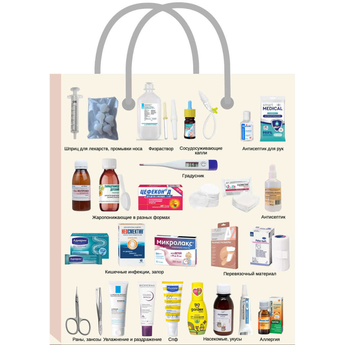 Ниже собрала аптечку по рекомендациям педиатра Александры Жуковской для канала «Легко в декрете»:
