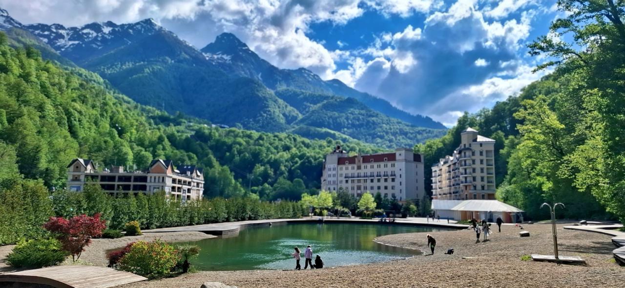 Красная Поляна — горный курорт в 40 километрах от Сочи, в долине реки Мзымта. После Олимпиады 2014 года здесь появилась развитая инфраструктура: канатные дороги, трассы, отели. Летом курорт работает не менее активно, чем зимой: подъемники довозят туристов на высоту до 2 200 метров, откуда открываются виды на Главный Кавказский хребет.