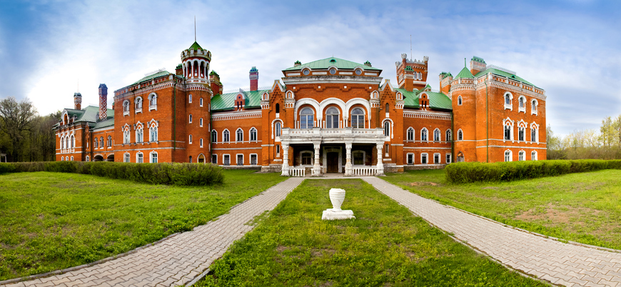 Замок Шереметева, находящийся на берегу Волги, своими башнями, витражами и сложным силуэтом из красного и черного кирпича больше напоминает европейский дворец, чем привычную русскую усадьбу. Строительство началось в 1874 году и продолжалось до 1915-го. Над проектом работали разные архитекторы, поэтому в облике замка сочетаются сразу несколько стилей: неоготика, романские мотивы, восточные детали и элементы древнерусской архитектуры. Внутри это разнообразие ощущалось еще сильнее: парадные залы сменялись тематическими интерьерами — от Восточного кабинета до строгой Дубовой комнаты.
