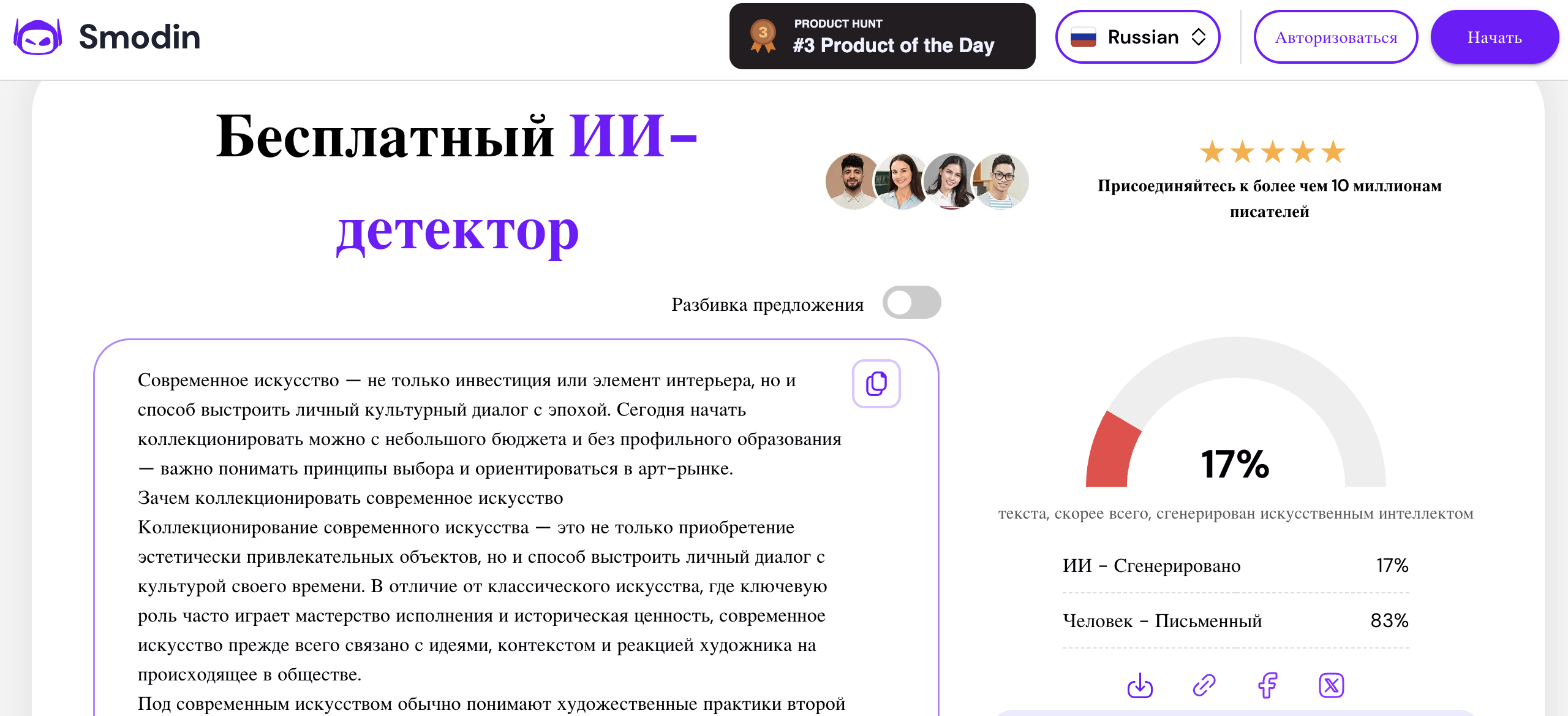 После того как оказалось, что ИИ за пару минут может создавать тысячи знаков текста, нейрослоп (ИИ-контент низкого качества) начал захватывать интернет. Это не нравится ни заказчикам, ни пользователям. Следом стали появляться сервисы, которые специализируются на проверке текста и помогают определить, ИИ это написал или человек. Только нужно помнить, что и эти сервисы часто дают ложноположительные результаты.
